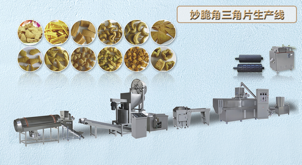 膨化小食品生产线 夹心米果面包片生产线 玉米片谷物生产线 营养米粉生产线 人造米生产线 大豆花生蛋白生产线 粟米条奇多生产线 油炸食品生产线 锅巴沙拉条生产线 燕麦巧克力生产线 妙脆角三角片生产线